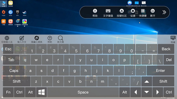 远程即启在连接成功之后,可以在手机的右上角看到一个工具条,里面有着手机操作时的常用功能按键,熟悉功能之后就可以更加流畅使用远程即启手机版来控制你的电脑。