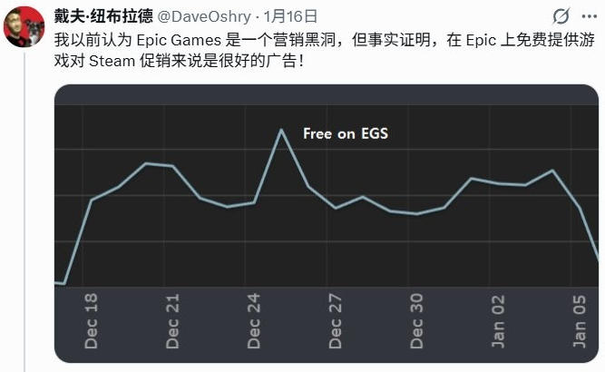 发行方负责人在社交媒体上发文透露,该游戏在假日期间于Epic游戏商店限免,随即带动其Steam同日销量较前一日激增约200%。他坦言自己曾认为Epic数字商店是个"营销黑洞",但此次事件表明,游戏在Epic平台限免实则能为Steam版本带来间接推广效应。