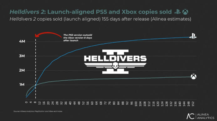 Alinea Analytics还跟踪了《绝地潜兵2》在Xbox上的销量表现。